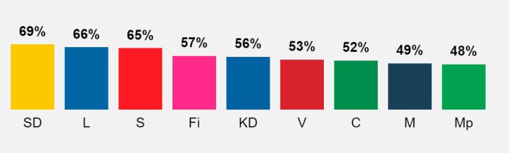 Men lite komiskt att den senaste visar 57% sympatier med KD, det hade jag väl aldrig trott…