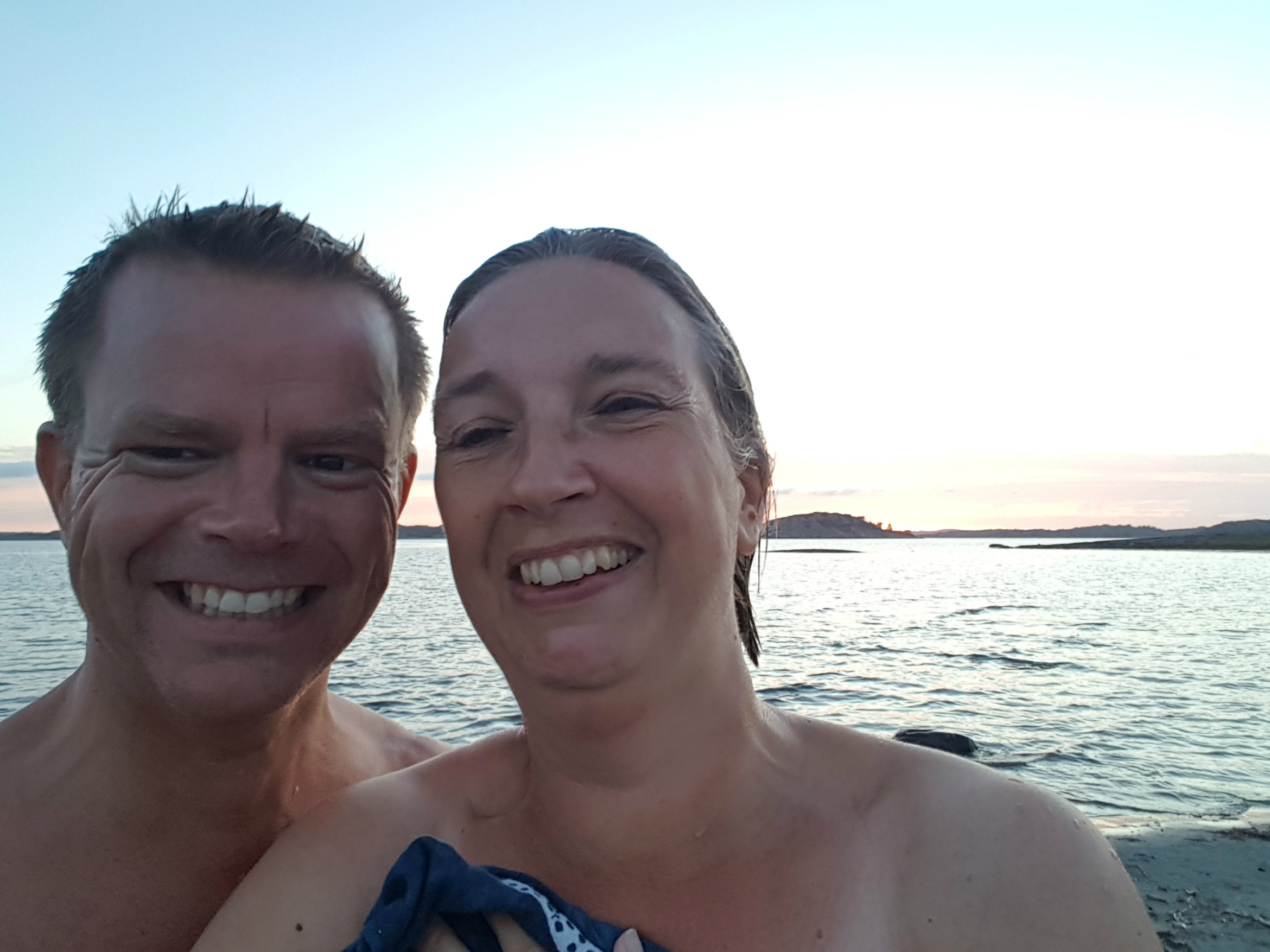 Maken föreslog att vi skulle gå ner på kvällen och ta ett kvällsdopp. Allt inom mig skriker ”JAG VILL INTE!!!” men jag vet egentligen inte varför. Det ska ju vara så underbart och härligt med kvällsbad liksom. Men jag fryser mest och är ju inte speciellt glad i att bada egentligen.