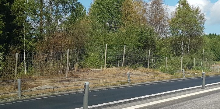 Jag pratar förstås om viltstängslet. Det har stolpar av TRÄ och inte metall, dvs dom är inte eftergivliga och livsfarliga i en situation där en bil far ut utanför vägen. Trästolpar ger inte efter för bilen utan splittras och blir träflis på ett mycket opraktiskt sätt för de som sitter i bilen, och sånt bygger vi inte längre (hoppas jag).