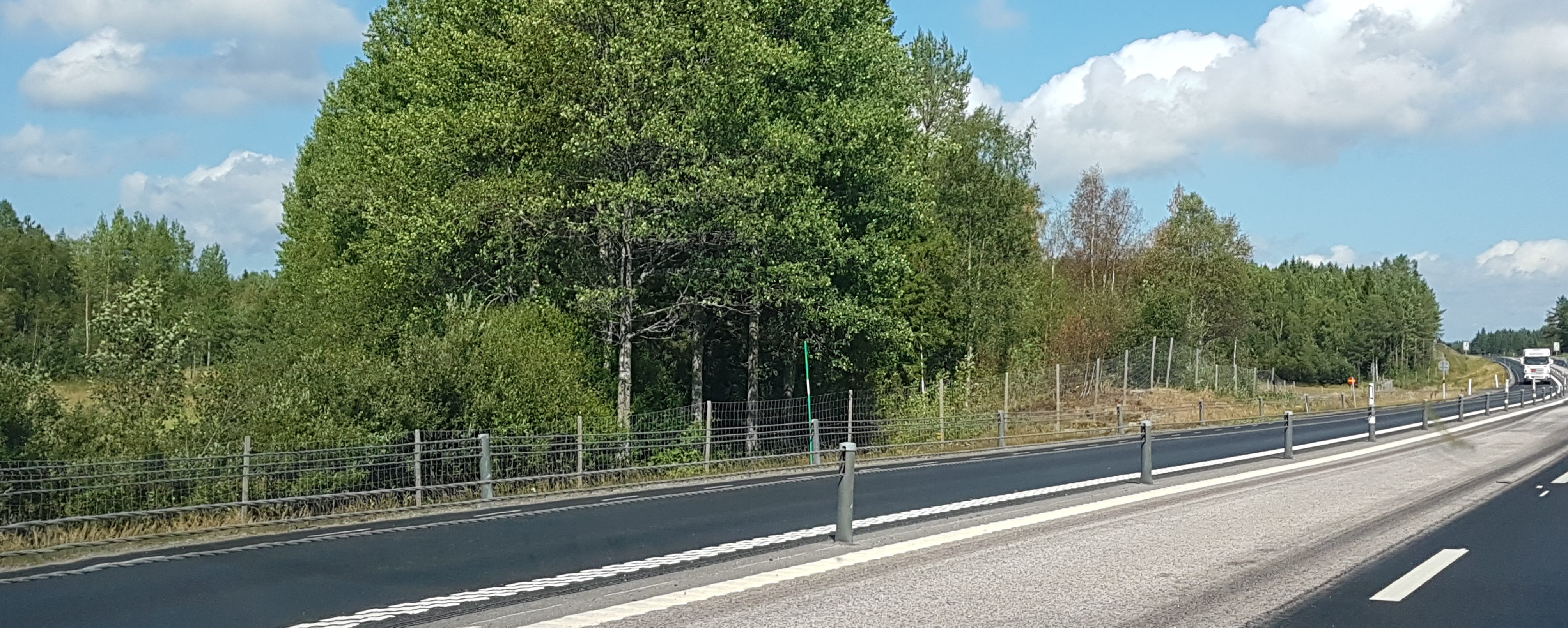 Jag pratar förstås om viltstängslet. Det har stolpar av TRÄ och inte metall, dvs dom är inte eftergivliga och livsfarliga i en situation där en bil far ut utanför vägen. Trästolpar ger inte efter för bilen utan splittras och blir träflis på ett mycket opraktiskt sätt för de som sitter i bilen, och sånt bygger vi inte längre (hoppas jag).