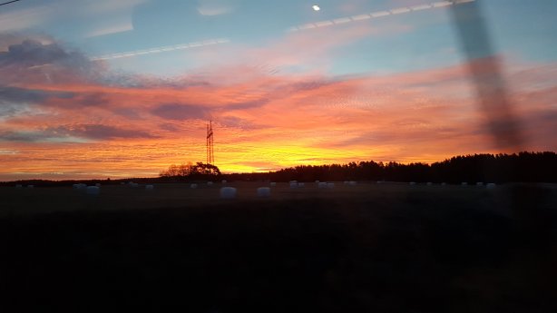 Men jag kan rapportera att det var (ännu en) vacker soluppgång i Västsverige, samat att det är frost på marken på landsbygden, dvs svinkallt om fötterna på tåget.
