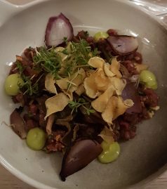 Här under någonstans är en råbiff (ja jag frångick mina veganska principer i några timmar men ångrade mig redan senare på kvällen). Inte helt uppenbart, eller hur?