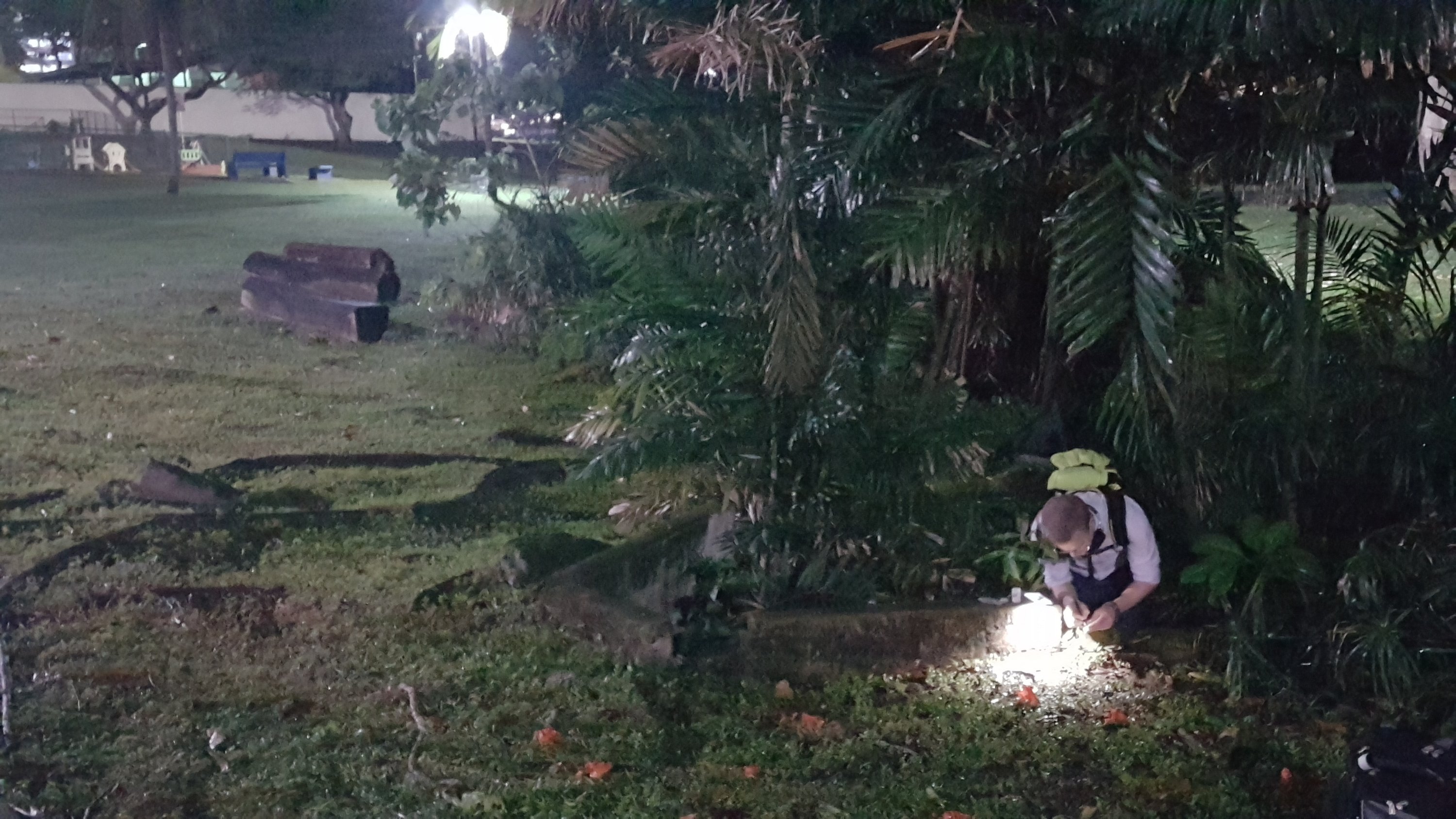 Efter en liten stund, med barn så trötta så dom höll på att svimma (vi jobbar hårt på att vinna utmärkelsen ”Årets Förälder”!) fick vi loggat cachen, se lite på parken innan det var kolmörkt, stuvat in oss i en annan taxi och åka tillbaka till flygplatsen (för bara $25 den här gången).