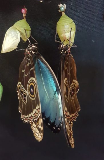 Fjärilarna på bilden har precis krupit ur och vecklat ut sig, rätt fint att en så vacker fjäril kan komma ur en så oansenlig kokong (eller vad det nu hette).