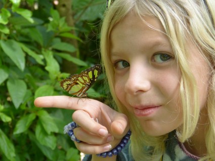Det visade sig också att vi har en fjärilsviskare i familjen också (funkade inte på Blue Morpho tyvärr), dvs en person som lockade till sig fjärilar och fick dom att sätta sig på handen.