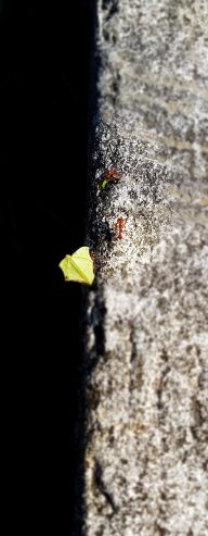 Skillnaden mellan dom igår och dom idag var att dom idag var lite mer arbetsvilliga och de flesta bar blad eller annat dom hittat längs vägen. Några få var projektledare som bara gick fram och tillbaka, men inte alls lika många som igår.