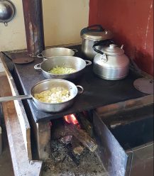 Anyway, så småningom var det lunch, och den fick vi hjälpa till att laga själva. Barnen bakade fikabröd och vi vuxna beredde grönsaker som husmor sen tillagade på vedspisen.
