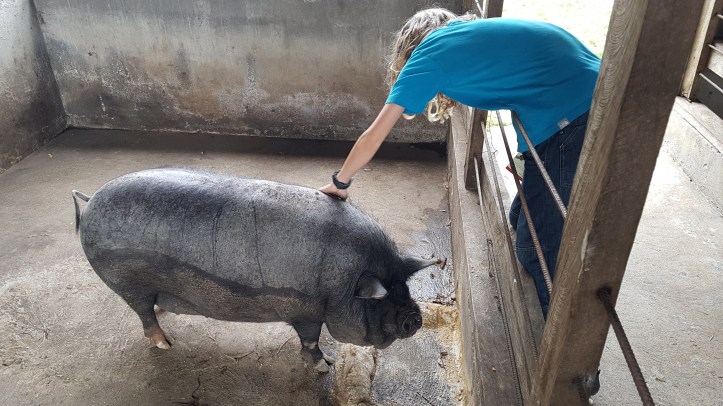 Adam fick en ny kompis i grisen som var där; en stor, svart en som hette Jefe, ”Boss”, och som Oskar inte kunde se ögonen på trots tre olika besök då han undersökte det rynkiga grisansiktet noga noga. Ska väl erkänna att jag inte såg själva ögonen jag heller, men ögonfransarna var ändå rätt tydliga och jag tror det finns anledning att anta att ögonen var strax därunder.