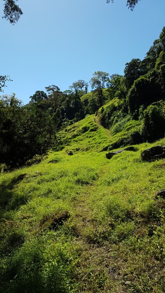 En brant anmarsch nedför (och mardrömmarna om hur jag skulle komma uppför senare på dagen började direkt), varmt som tusan och så var vi framme vid vattenfallet.