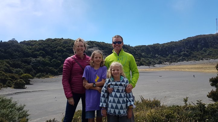 När man går från parkeringen till utsiktspunkten går man genom en annan gammal krater som är helt grå och död, det är nog svårt för något att riktigt få fäste där. Ser ut som ett månlandskap, väldigt coolt. Det är lite oklart för mig varför vi valde att ta kort på oss vid den döda grå kratern istället för den fantastiska blå, men jaja, here it goes: