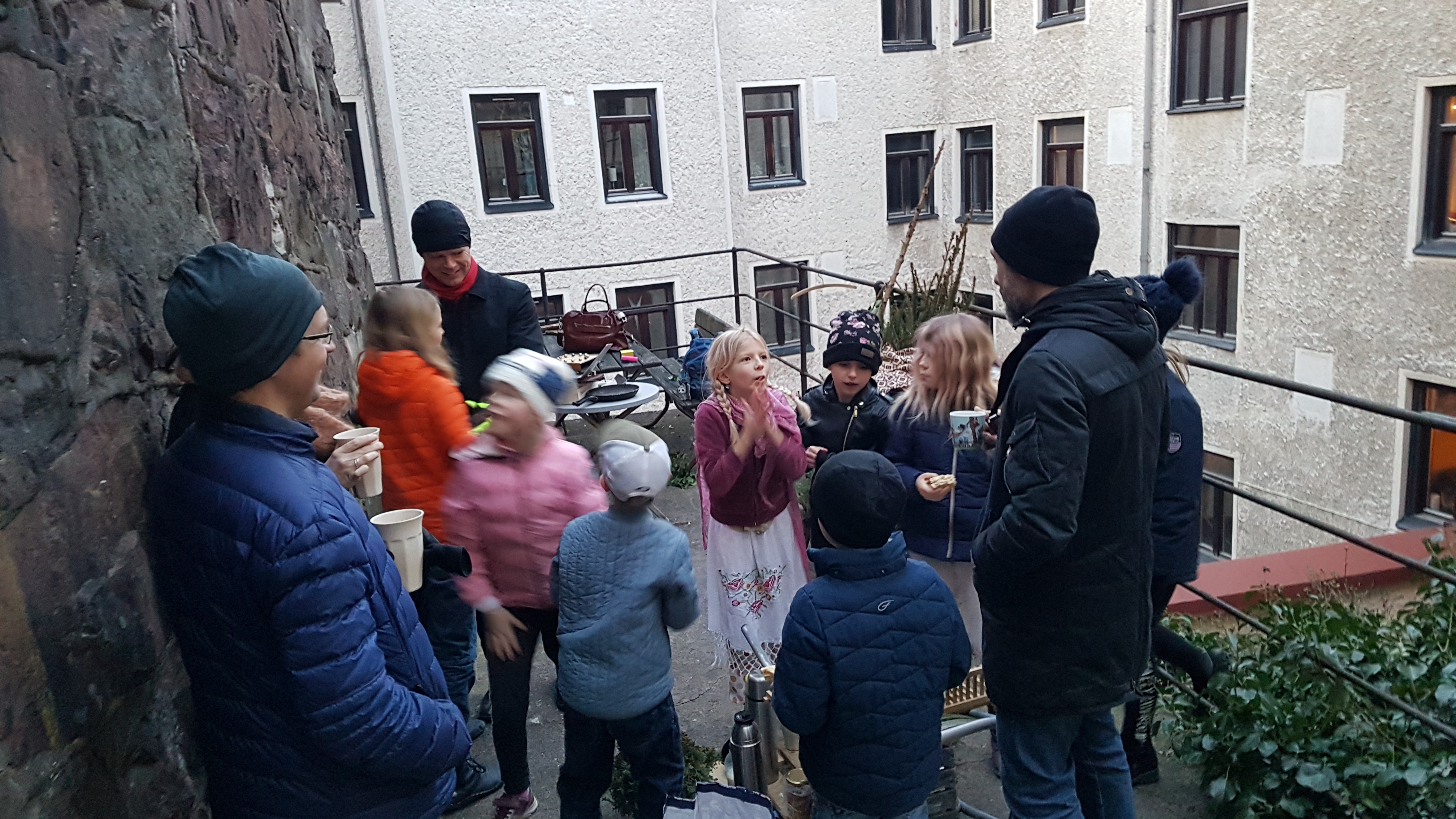 Efter en stund var det dags för uppträdandet. Scenen var på en trapp som gick rätt in i en vägg (!) och där dom lagt ut en svart matta som dom hittade i en container på gården (hyresvärden håller tydligen på och renoverar en lägenhet). Stolarna vi satt på (eller skulle suttit på, dom var lite väl unkiga) var också fynd från samma container. Återvinning minsann.