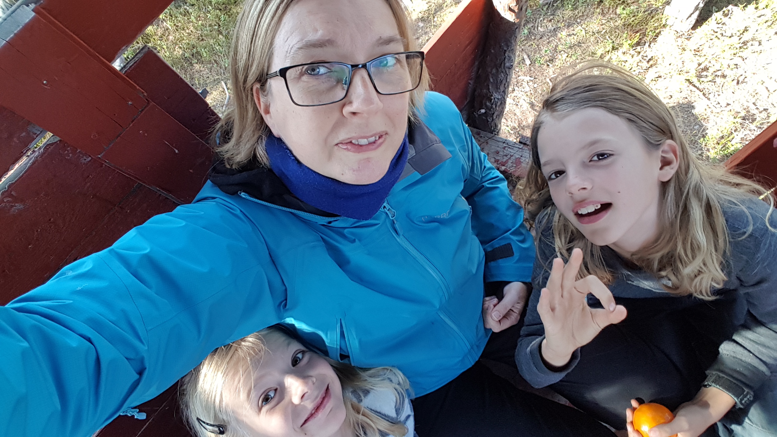 Vi fikar uppe i kojan – tre personer på en dryg kvadratmeter, mysigt mysigt och lite lagom dragigt, men inget som tar ner humöret direkt. Chokladkex och clementin, behöver inte vara mer komplicerat än så.