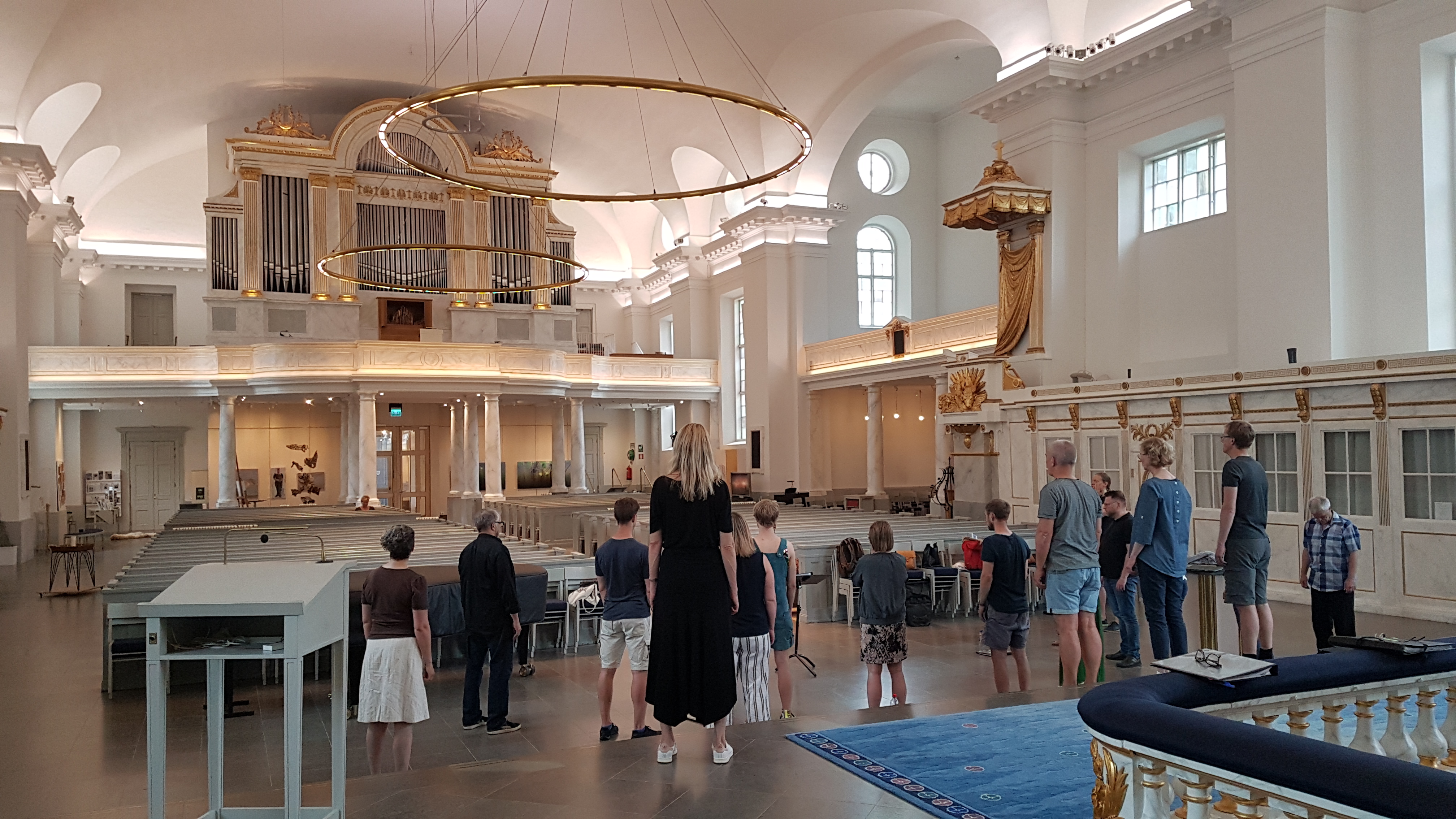 Haga Motettkör har två program i European Choir Games – ett sakralt och ett kammarkörprogram (rätt så sakralt det också om du frågar mig). Det sakrala ska framföras i Domkyrkan i Göteborg, och kören hade möjlighet att repetera där idag.
