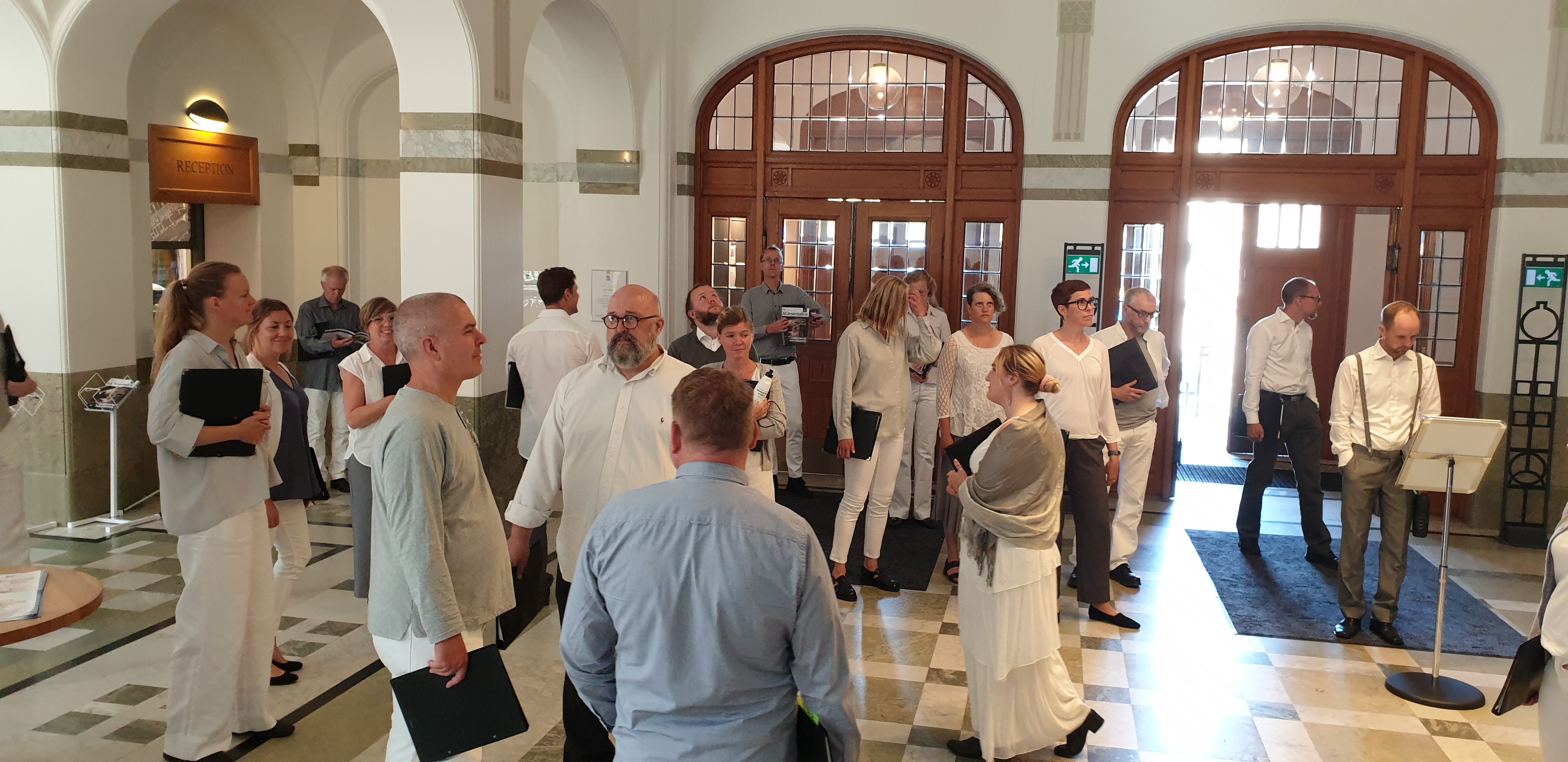 Eftermiddagen kom, tävlingsmomentet också och här var vi först ut av alla körer. Oklart om det är bra eller dåligt, men så var det iallafall. Alla var lagom taggade och nervösa, och det var en känsla av att ”nu jäklar, det här kan vi!!”. Och IN med oss.