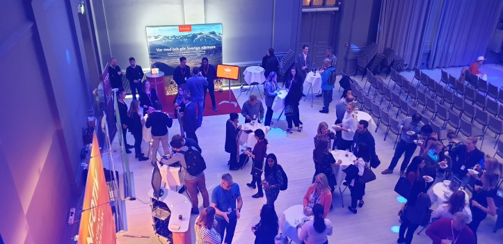 Grönt var helt klart i majoritet, och för oss som spanade på blått och orange var det inte lika mycket att intressera sig för tyvärr. Det mest spännande var att en kvinna från Göteborgs Stad Trafikkontoret försökte ragga mig över till dom istället för Trafikverket (jag är inte intresserad), men i övrigt var det rätt avmätt stämning – trots att det bjöds på både mat, öl och vin i de mängder man önskade.
