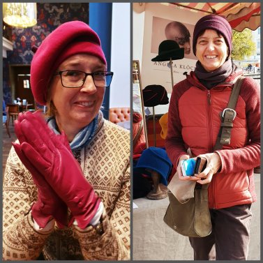 Så Gudrun Sjödén-tanten började idag med en hatt/mössa/basker i ull gjord av Angela Klöcke, som i egen hög person stod och sålde sina hattar.