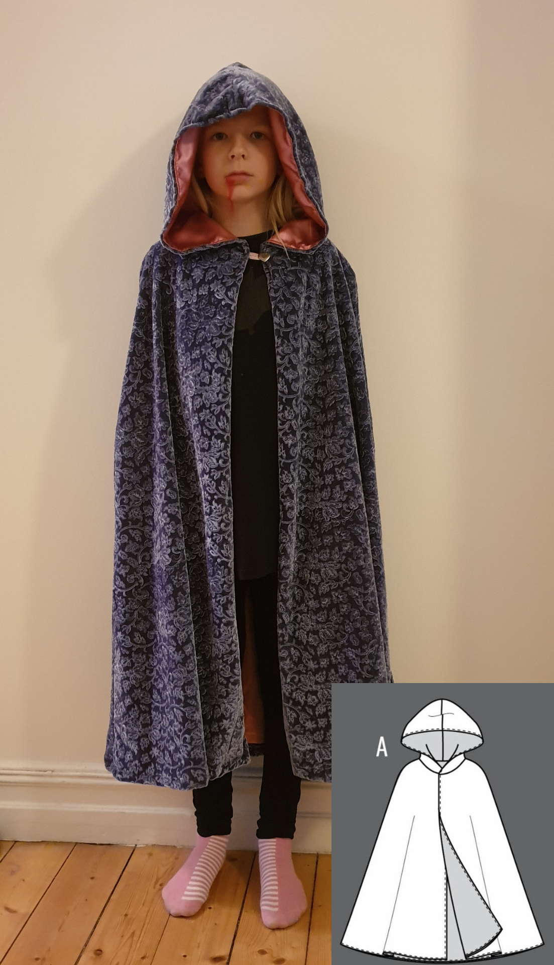 Jag hade trott typ en svart en med rött foder, men nej. Halloween i år går i duvblått och rosa, tro’t den som vill!