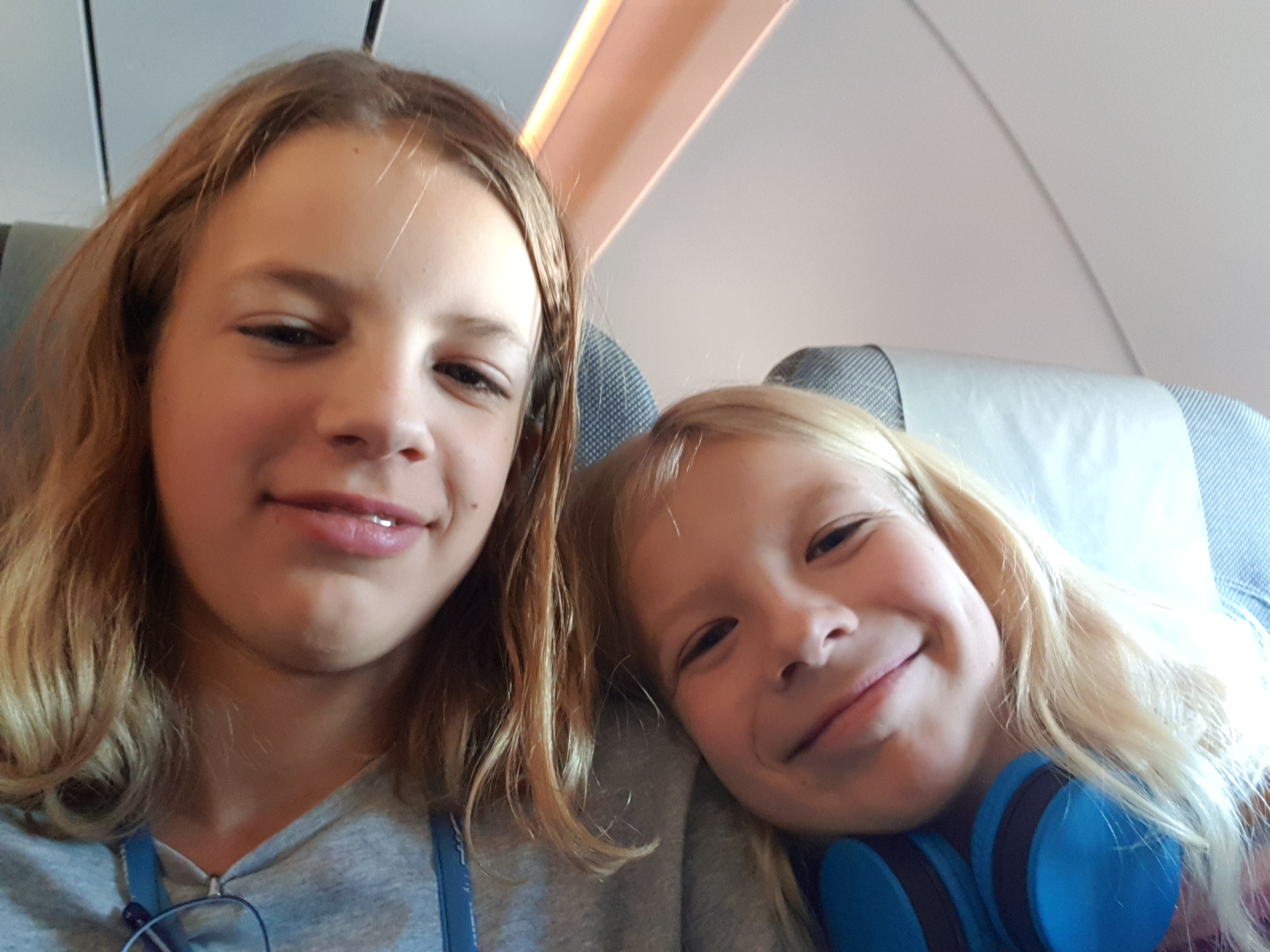 Det är ingen stor flygplats den här på södra sidan av ön, så vi gav oss ut med våra väskor som ett litet torn på en vagn som A manövrerade med all skicklighet man kan förvänta sig av en tolvåring. Området utanför är inte heller jättestort, men vi fick inte riktigt instruktionerna i meddelandet att stämma med verkligheten där på flygplatsen, trots att vi gick runt en bra stund och försökte olika angreppsvinklar.