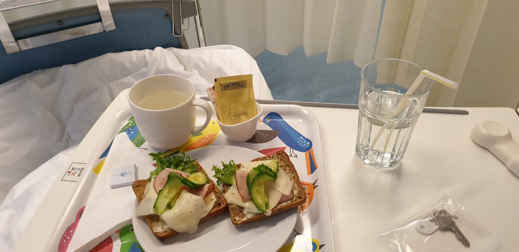 Sen in på operationsbordet, på med den varma uppblåsbara filten och sen blev allt svart. Nästa gång man kikar upp är man i uppvaket en timme senare. Lövely.