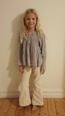 Så har vi gått varvet runt. Jag sitter och syr sjuttiotalsbyxor på beställning från min son och kastas tillbaka till min egen barndom och mina röda byxor i smalspårig manchester.