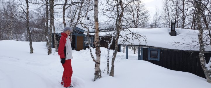 Tajmingen på dagen var perfekt; det var efter att förmiddagens snöfall hade lagt sig, solen kikade nääästan fram, och det var i stort sett vindstilla innan det kom lite blåst senare. Vi gick inte jättelångt, dryga 3 km totalt, men en helt ok ansträngning när man tänker på dagens allmänt softa anslag och mängden nysnö.