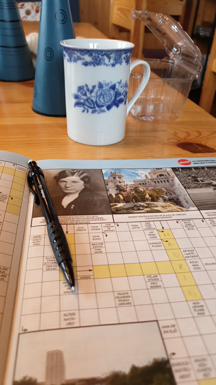 En lugn förmiddag med lite korsord (enda gången jag köper Allers är när jag ska på semester som det här så jag har korsord att grunna på), kaffe, snö utanför fönstret och allmänt chill.