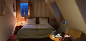 Vi kom igår kväll, kryssade runt med diverse tåg för att komma rätt (dom har spårarbeten här också som gör genvägar till senvägar), gick en sväng från stationen i Delft och kom någorlunda helskinnade till hotellet efter att ha blivit vilt plingade på av alla cyklister som inte har väjningsfunktionen aktiverad på sina cyklar. Klarade dessutom av ett restaurangbesök utan att bli ihjälkörda, vilket får ses som en lyckad kväll överlag.