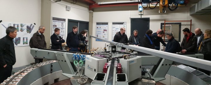 Redovisningarna görs hos en av partnerna, Delfts tekniska universitet, och det var inlagt ett studiebesök i ett av deras labb där dom gör järnvägsrelaterade experiment. Det ska tilläggas att de flesta som är med här är antingen tillverkare av järnvägsrelaterad utrustning, eller så är dom forskare, och oavsett vilket så finns det ett förhållandevis stort järnvägsintresse och -kunskap. Vilket väl är lämpligt, eftersom det är järnväg vi forskar inom.