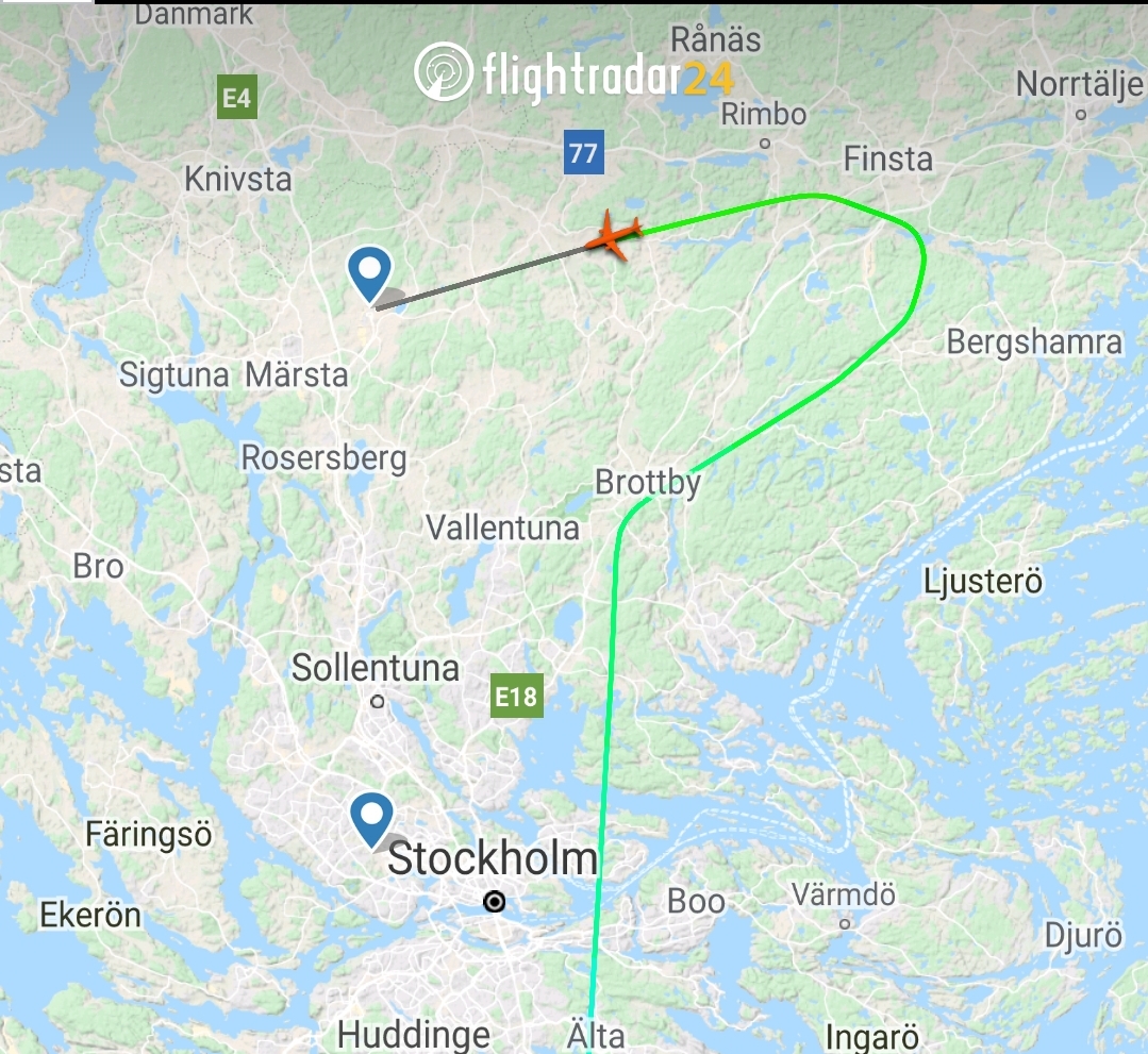Kollade igen för en liten stund sen och då var dom 7 min från landning på Arlanda, men nu när jag kollade nyss har dom gjort en lov runt och förlängt hela resan med några minuter – precis vad man har tålamod till när man är nästan framme och börjar slappna av och vågar tro på att man faktiskt kommer hem…![]()