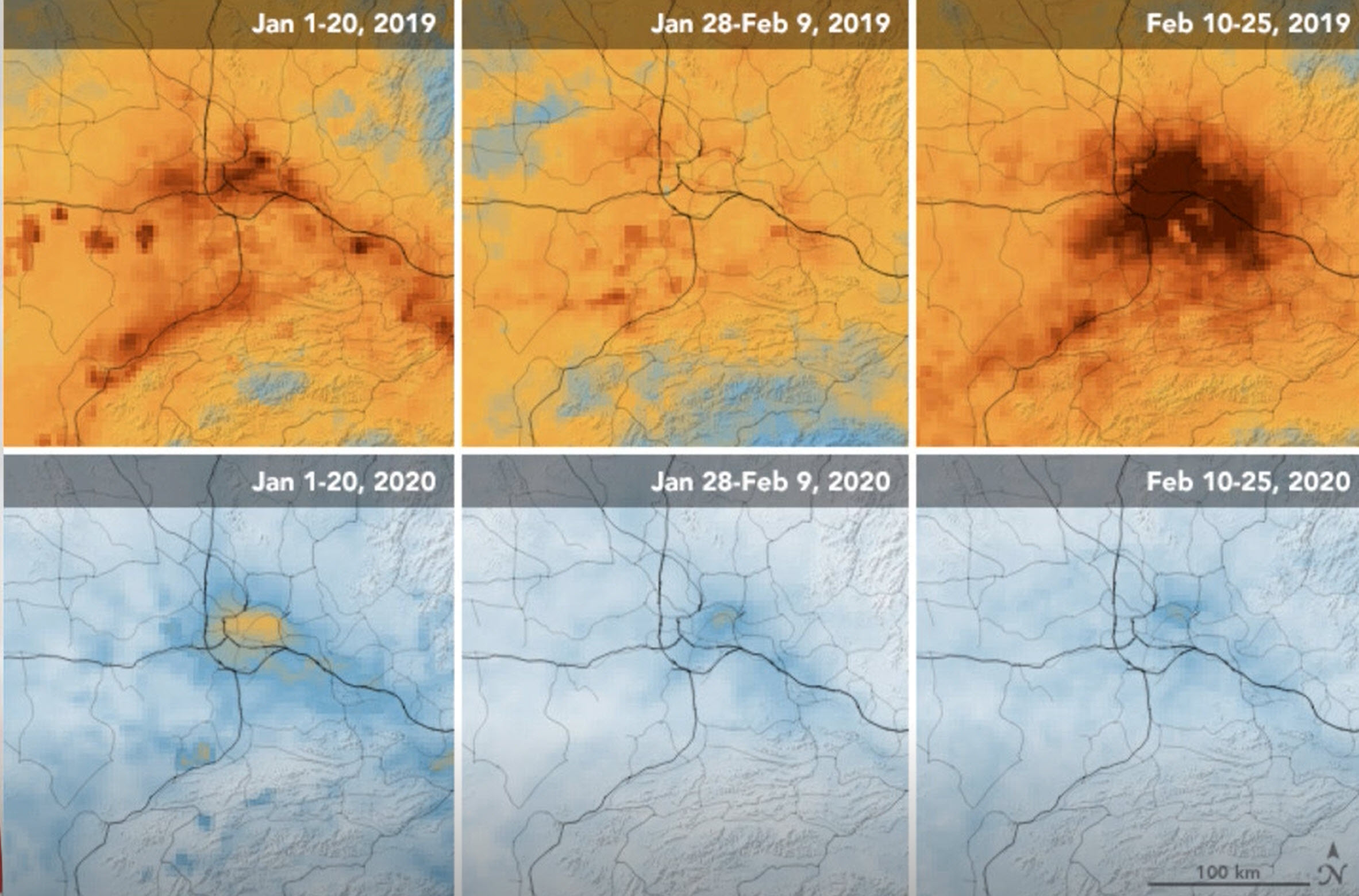 Luftföroreningarna i Wuhan-området och norra Italien (och säkert på fler ställen) har gått ner
