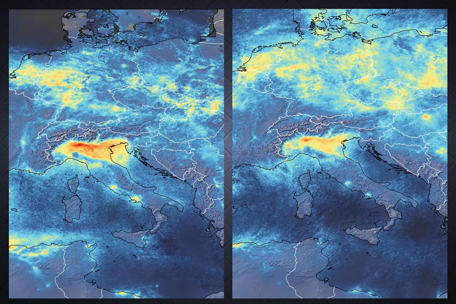 Kolla in dom här satellitfotona över Italien och Wuhan, och se vad mycket bättre luften har blivit efter att folk inte reser till jobbet så mycket längre, och om jag förstått det rätt, att fabrikerna i Wuhan hållit stängt under en längre tid (men nu börjar tuffa igång igen, säkert till stor glädje och lättnad för alla de som får sin inkomst därifrån (foton från ESA).
