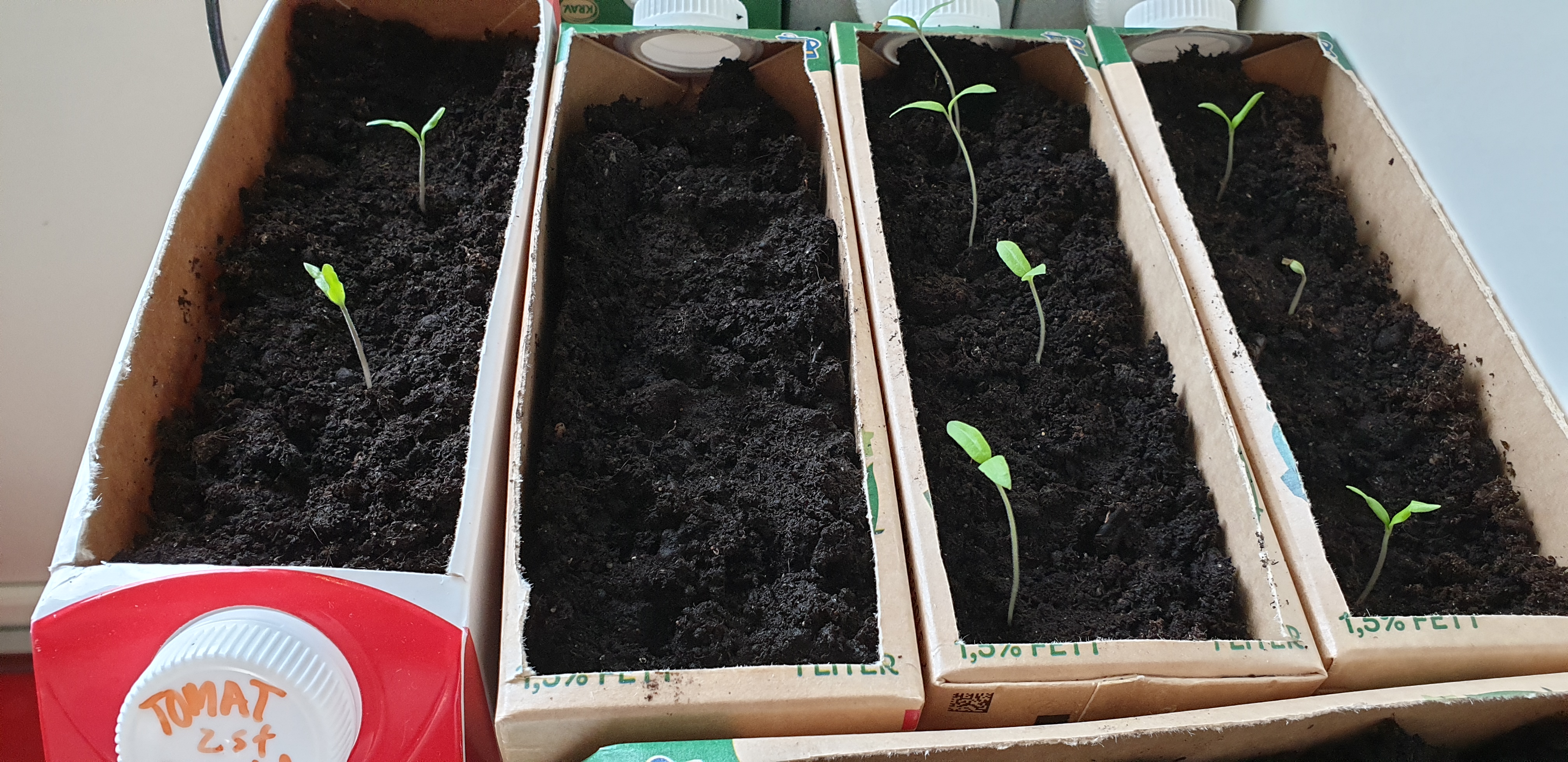 Och vad har vi här? Jo, det är totalt 10 lådor med två sorters tomater, svartkål och lök. Resten skulle inte förodlas utan sättas ut direkt i landet, så nu väntar vi bara på varmare väder.