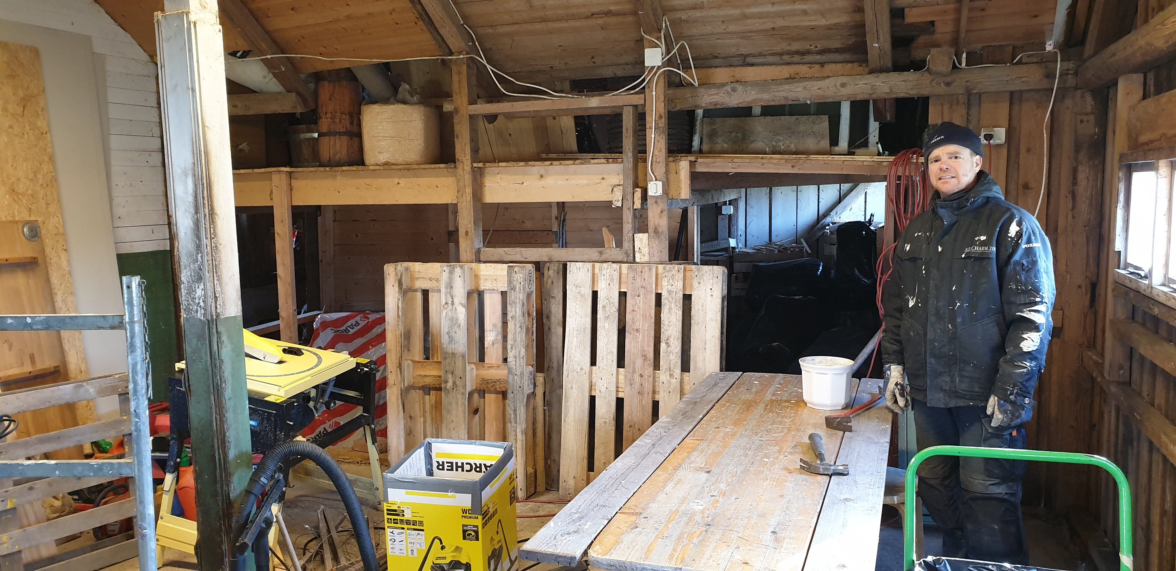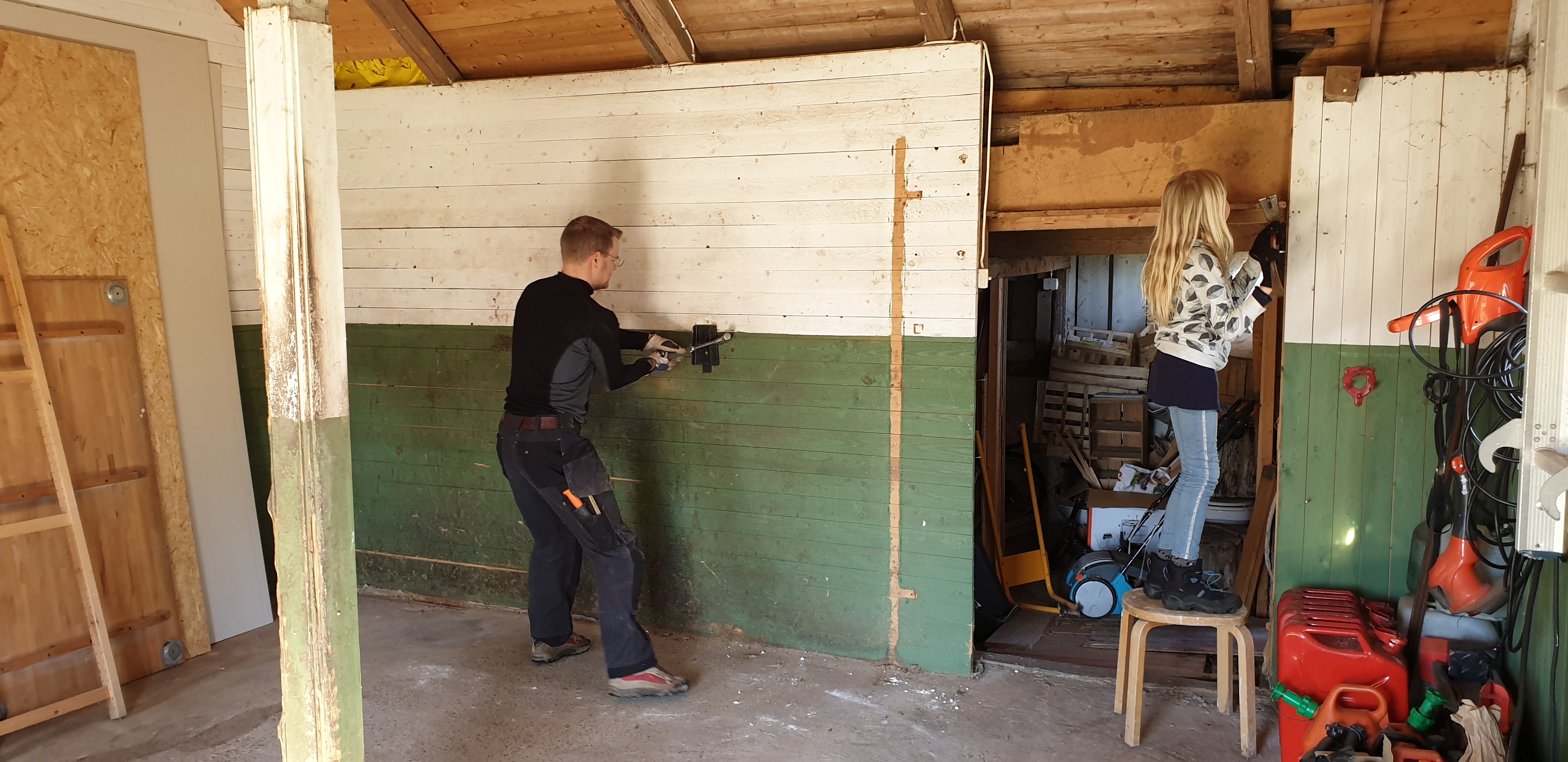 Men en permitterad man som dessutom har påskledigt OCH en lagård där ena gavelns fasad ska bytas är en uppsida med corona, och idag satte vi igång. Efter det lilla förarbetet som alltid måste göras med att tömma ett utrymme (läs: bära saker hela förmiddagen) var det då äntligen dags för det roliga; att RIVA!!
