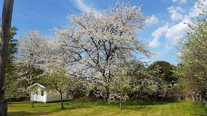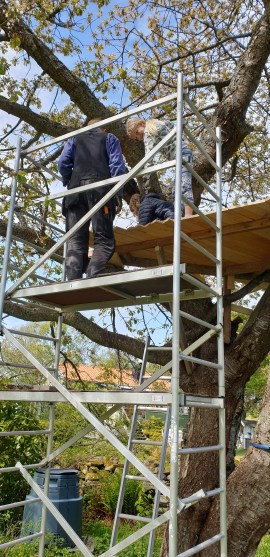 Efter att ha rivit den gamla kassa kojan vi hade i oxeln började det smidas planer på att bygga en ny. Ett förestående övernattningsbesök nästa helg av två klasskompisar blev katalysatorn som fick planerna att sättas i verket – knappt 4 m upp i vårt enorma körsbärsträd.