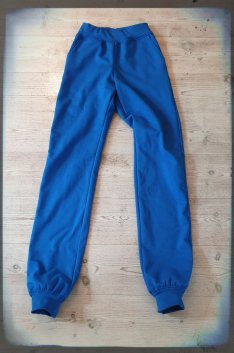 Inte så mycket att säga egentligen; fortsättningen på gympaoverallen/mysdressen som påbörjades i förra veckan med en koboltblå hoodie fick idag sitt avslut med ett par byxor. Klippte och sydde allt utom muddar i måndags, men sen har den hängt på en stol i väntan på avslut. Som skedde idag.