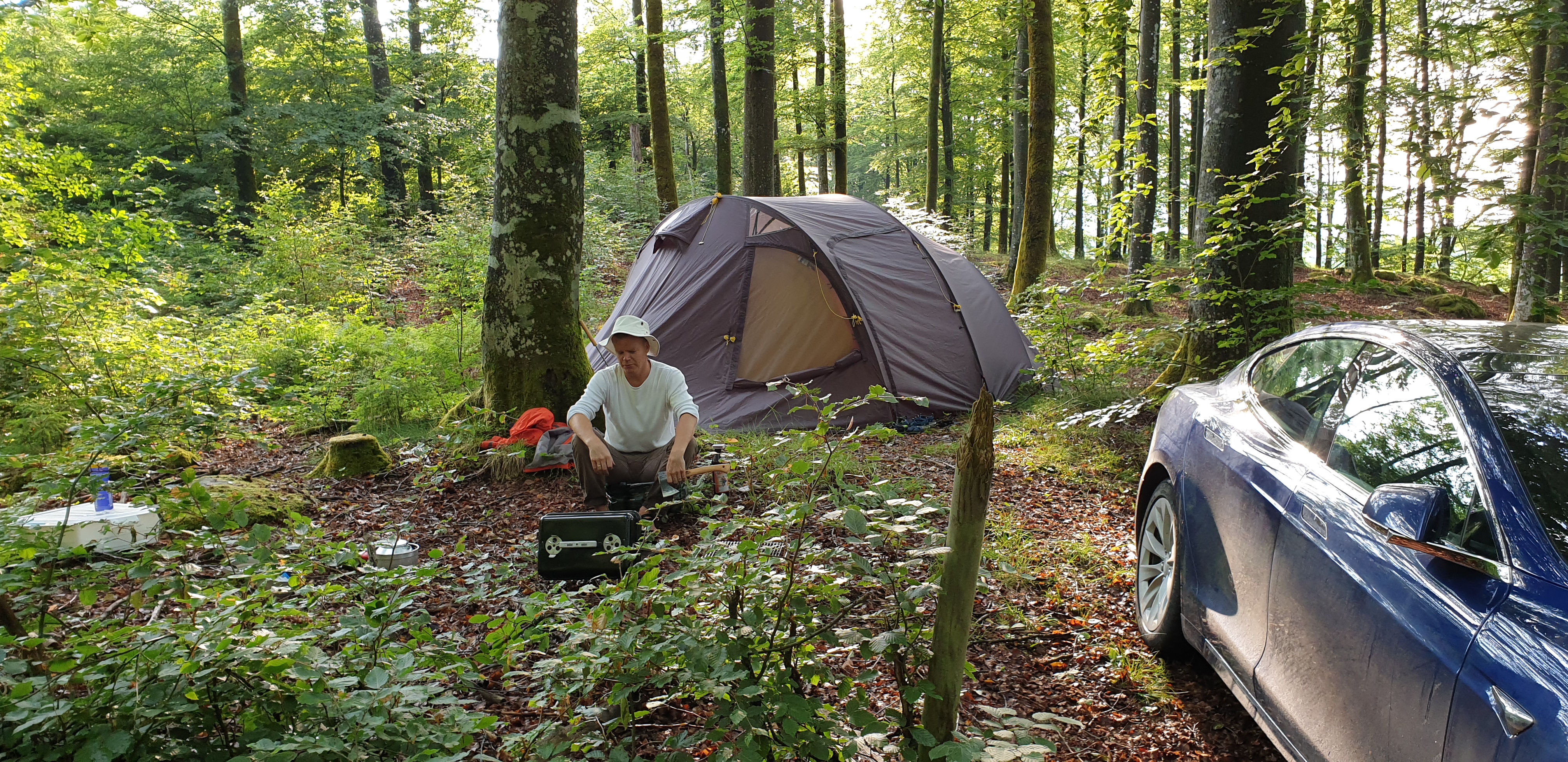 Så vi hade kittat med en Midsommarbox från Thörnströms kök, våra tjocka fina uppblåsbara liggunderlag, dunsovsäckarna, stora tältet och den bärbara grillen som sagt, och bil förstås.