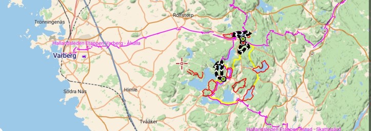 Med huset uthyrt på AirBnB över midsommarhelgen (alla intäkter behövs just nu) var planen att tälta över helgen. Målet var Åkulla Bokskogar, öster om Varberg en bit in i landet (svart sicksack i bilden). Varför just dit? Jo, jag vill egentligen vandra Hallandsleden, men den är svår då den sträcker sig från norr till söder och man måste ta sig till och från med lokaltrafik (om man inte vill gå tillbaka samma sträcka förstås), och så måste man släpa på tält och allt.