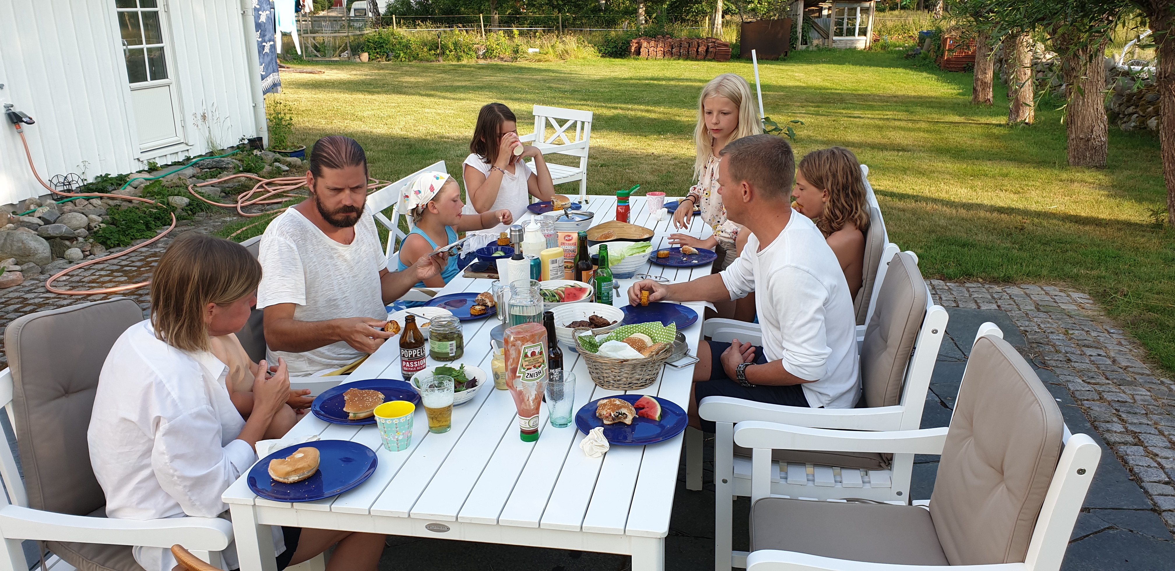 Uppe vid huset igen kommer den intressanta matlagningen. Även om vi inte var uppe i ansiktet på varandra så stod vi ju faktiskt i samma kök; jag skar grönsaker och N gjorde hamburgare av köttfärs, O och B stod med varsin öl och alla pratade. Inte riktigt Coronasäkert precis, även om det inte är en särskilt lång stund och även om vi stod vid olika bänkar, men det känns jobbigt ändå.