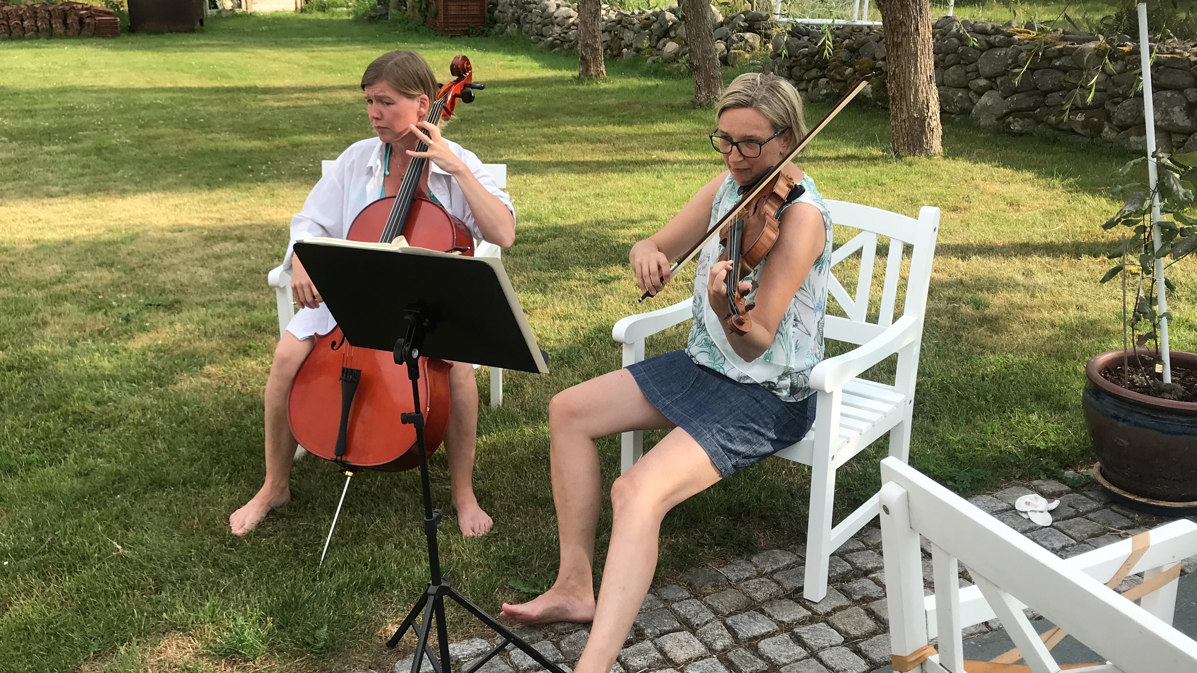 Vi har spelat tillsammans förut, många gånger i flera år som stråktrio tillsammans med A på viola, men det börjar bli några år sedan. Typ 15. Sedan några år tillbaka sjunger vi ihop i Haga Motettkör, men instrumenten har legat undangömda länge. Nostalgin och den underbara känslan det är att spela tillsammans var fantastisk…
