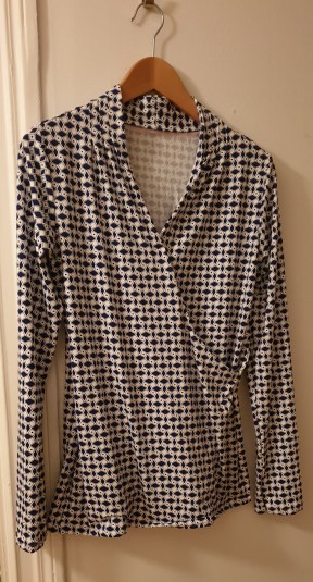 Himla dålig bild, men det blir så halv ett på natten. Principen är iallafall tydlig; omlott, rynkor/veck uppe vid axlarna, tyget är någon sorts viskosjersey, inte klart vad riktigt för jag hittade tyget i Myrins textils stuvlådor.