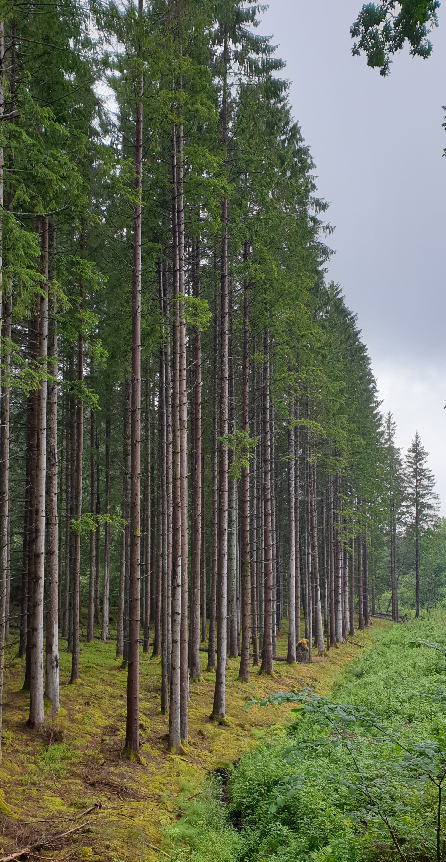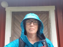 Ja man torkar – om det slutar regna någon gång, vilket det inte gjorde annat än i enstaka minuter, och långa stunder var det rena skyfall. Två gånger gick jag in under granar för att försöka skydda mig från det värsta… Jag var torr inunder som tur var, dvs utekläderna höll måtten, men det är segt att gå och gå när det är blött hela tiden. En ljudbok gjorde det hela lite lättare, men vägen gjorde det inte.