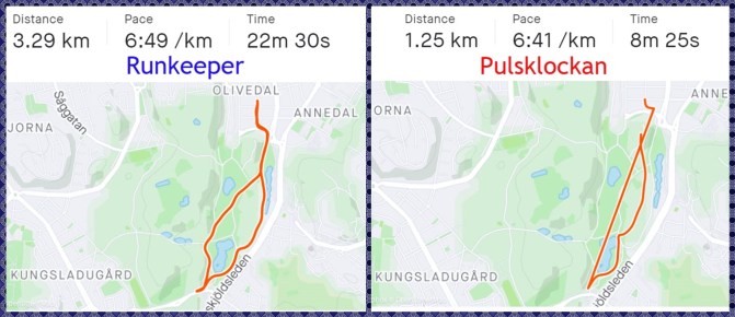 Från början hade jag Garminklockan som säkerhet och Runkeeper som experiment för Runkeeper var så himla instabilt medan klockan var stadig och trovärdig. Men nu har det helt märkligt svängt över på nåt konstigt vis och det är Runkeeper som står för stabiliteten och pålitligheten, medan Garmin 405’an ger osäkra resultat.