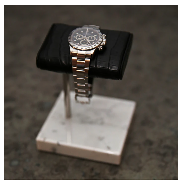 För det är ju faktiskt så att man riskerar att repa sin klocka när man har den på sig och vilar armen på skrivbordet på jobbet, eller när man skriver på sin laptop, så pass mycket att det är lite av ett problem? Visst är det också så att det hade varit väldigt mycket mer praktiskt om man haft en liten kudde på en pinne att lägga den på för att ge den det skydd den behöver? (Reklamfilmen som jag inte kan länka till tyvärr säger inget om att det är när man är hemma på kvällen och att ha den på nattduksbordet, utan den marknadsförs som något att ha på sin arbetsplats)