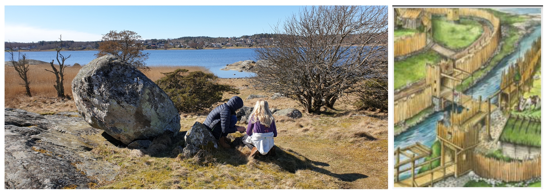 Målet för dagen var att besöka Hunehals borg, och gå en liten utstakad Whereigo-runda och lära oss mer om borgen som stod där för 800 år sen. Ja för det var inte mycket kvar kan man säga. Den lärande texten hade formuleringar som ”om du tittar ner härifrån ser du tydliga spår av…” och så någonting. Den alltmer tynande arkeologen inom mig hade inte en chans att se tydliga spår av bopelare i svackan som nu var beväxt med vass. Inte ens ett litet otydligt spår såg jag.