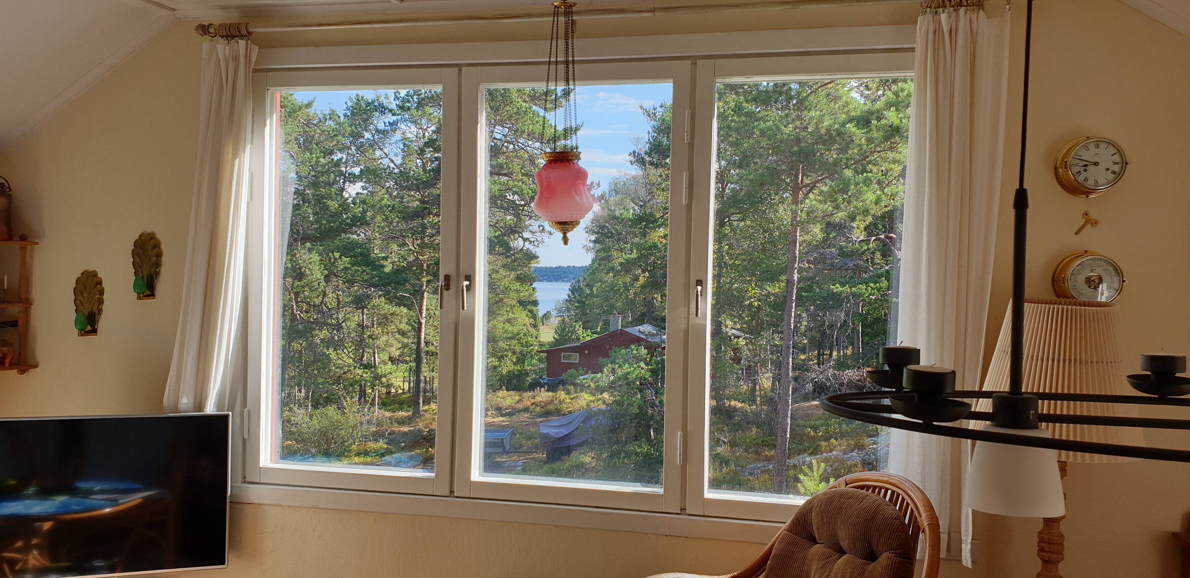 Och det är lite oklart vad som är dragningskraften här – det ligger långt bort, långt ut i skärgården, högt uppe på en ö (dvs ingen strandtomt), ständig vaksamhet att vara rädd om kranvattnet (alla har egen brunn), det finns inga ”aktiviteter”, inget att ”göra” som tex spela tennis, cykla eller annat. Man är liksom i sitt hus, nere vid båten, badar (fast det blir sällan särskilt varmt i vår vik), åker till Nämdö och handlar….