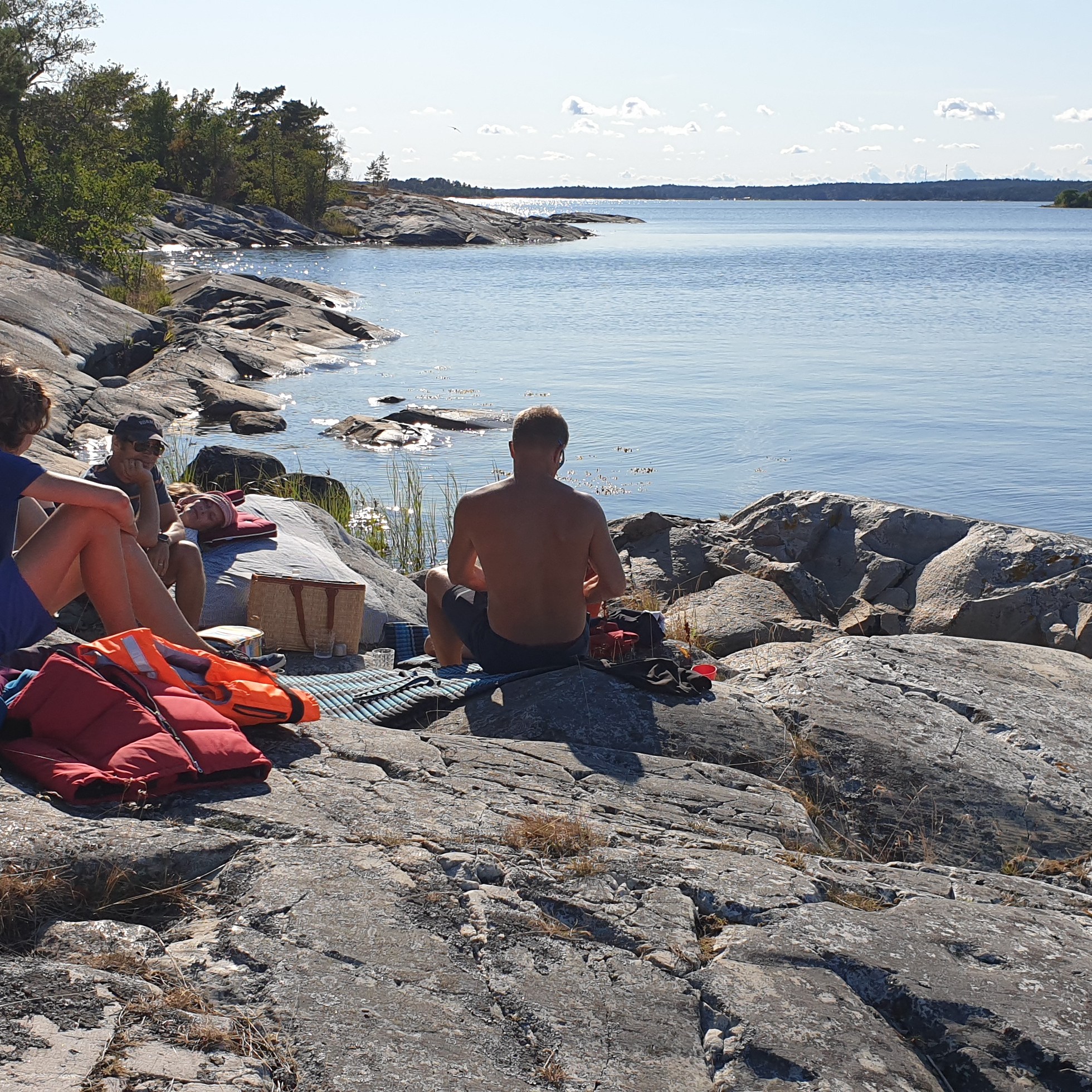 Men alla är inte lika fega som tur är. Katja och Bisse till exempel, som har hus på Runmarö, har en snabb båt och är gulliga nog att ta oss med på tur.