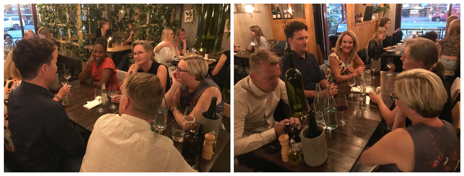 Ett antal timmar, pizzor och vinflaskor senare var vi mätta och otroligt glada allihop. En helt vanlig onsdag inte alltför sent på kvällen.