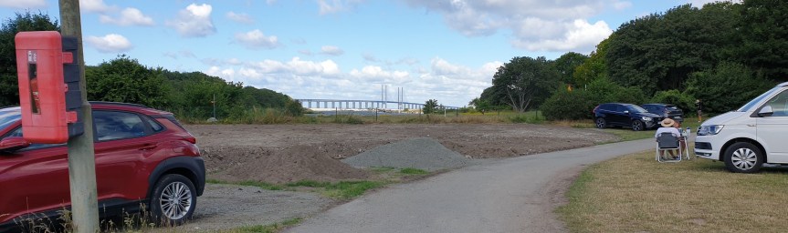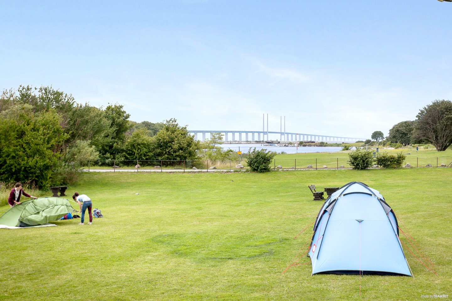 Nu kom ju vi dit vid typ halv tio på kvällen, så det där med den fantastiska vyn över bron var inte det man hade lust att fokusera på. Blåsigt också, men eftersom vi har världens bästa tält, så var det uppe och skyddade oss inom kort.
