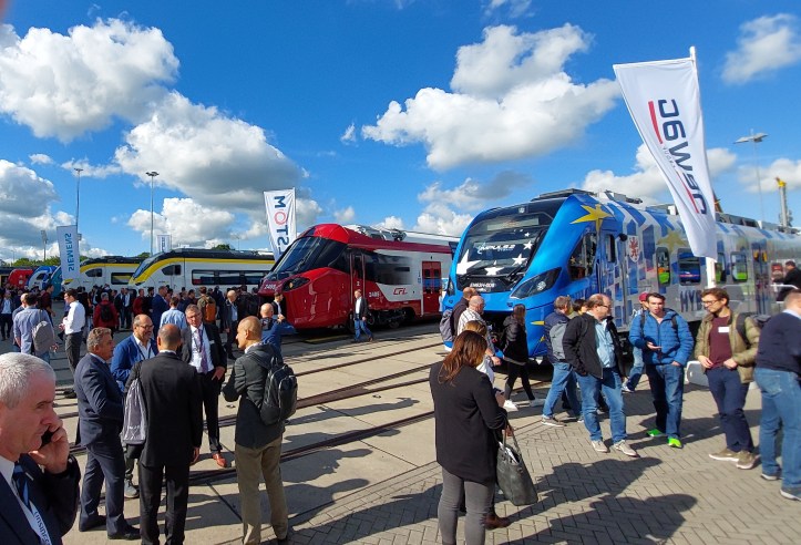 Första intrycket: InnoTrans är ENORMT. Vad man än kan tänka sig för olika aspekter av järnväg och tåg så kan jag lova att det finns här – tåg, tågmat, räl, allt som behövs för att bygga upp en järnväg, allt som behövs för att driva tåg inklusive slipning av hjul och räl, allt man kan tänka sig som har med tåg att göra.