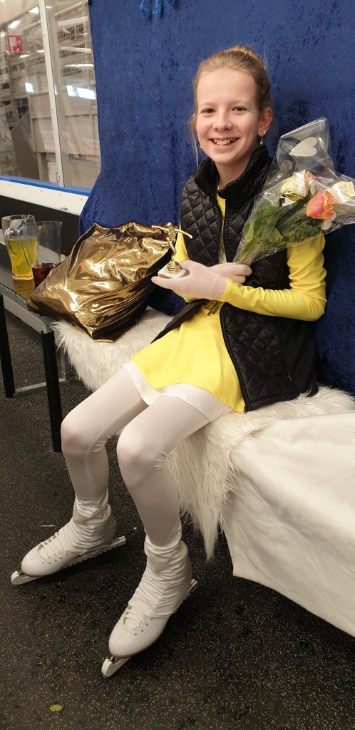 Alla får förstås guldstatyett, och ett diplom med skriftligt omdöme av domarna. Det är ingen prisutdelning på det viset, utan efter det här är det på med vanliga skor och gå hem (eller stanna kvar om man vill förstås), allt medan det strömmar in nya åkare som ska vara på isen om en liten stund.